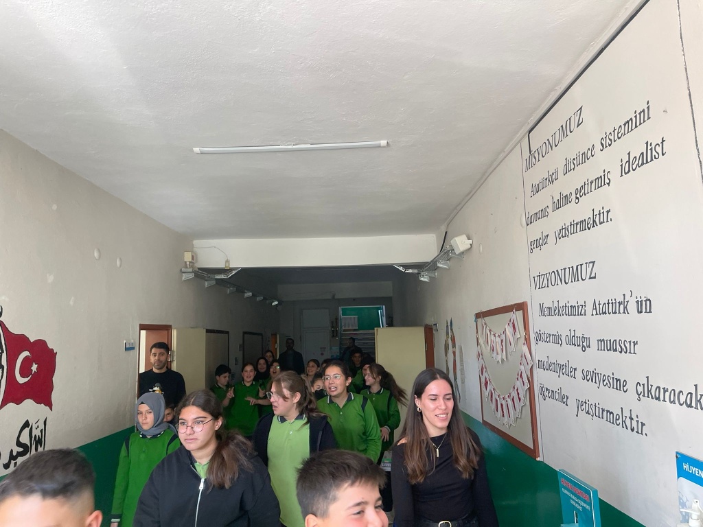 Alarmın çalmasıyla birlikte, tüm öğrenciler ve personelimiz büyük bir ciddiyet ve disiplin içinde hareket etti. Öğrencilerimiz, öğretmenlerinin yönlendirmesiyle hızla ve güvenli bir şekilde sınıflarını boşaltarak önceden belirlenen toplanma alanına ulaştılar. Tatbikat, kısa sürede ve hiçbir aksaklık yaşanmadan tamamlandı.